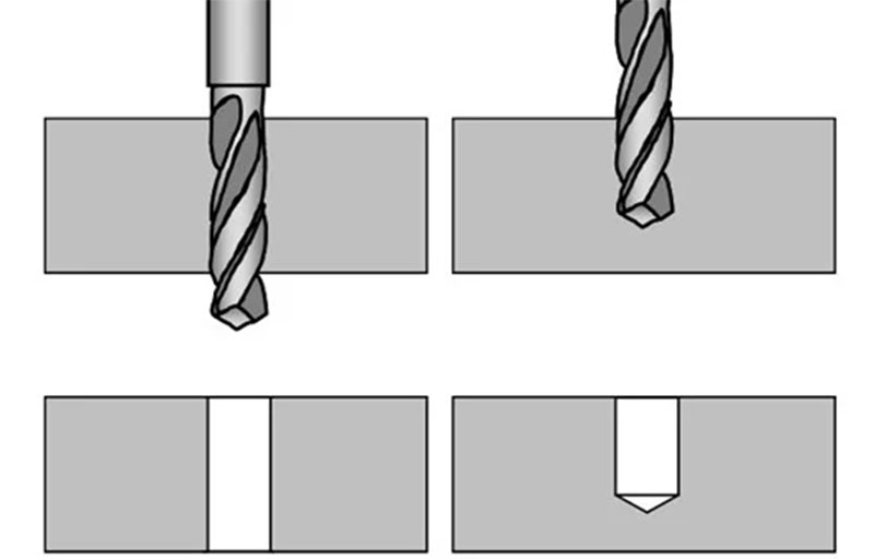 Besides their names, the differences between a blind hole vs. a through hole involve the process and the results. Blind holes do not break